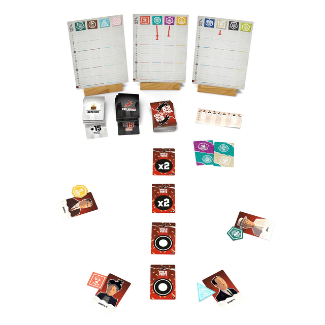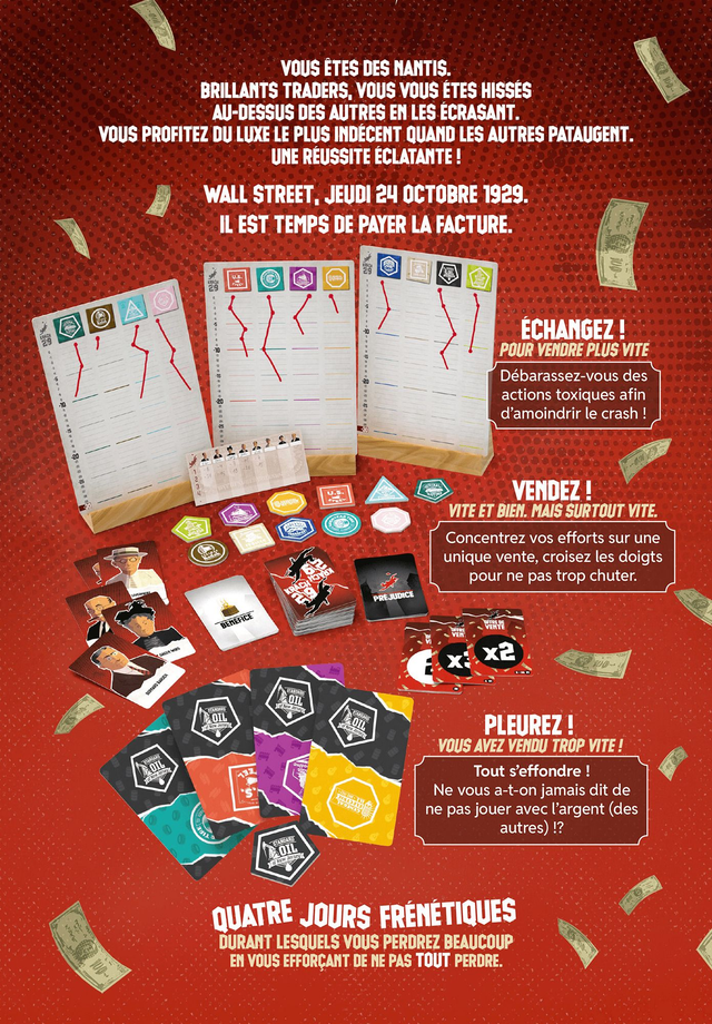 Chaque joueur obtient une main de cartes qui comportent 2 actions chacune. Ils doivent se débarrasser d’un maximum d’entre elles pour ne pas perdre d’argent !